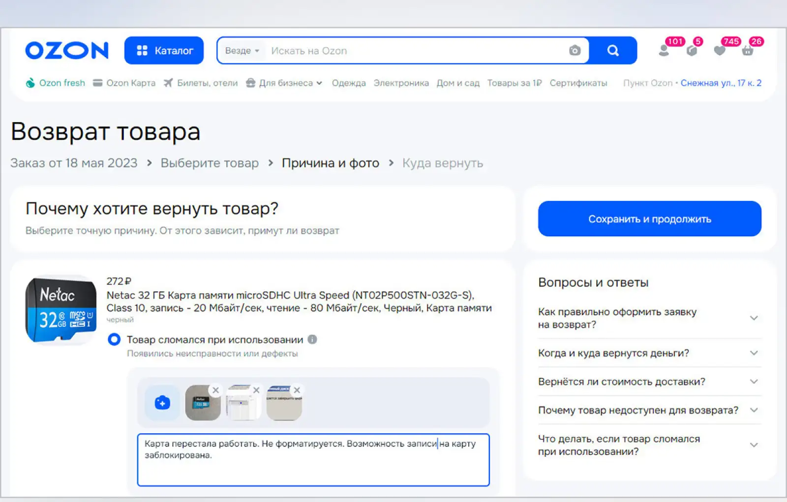 Расскажу, как вернул карту памяти MicroSD, купленную в 2023 году.