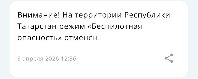 Напомним, 3 апреля в Татарстане вводился режим угрозы атаки беспилотников.