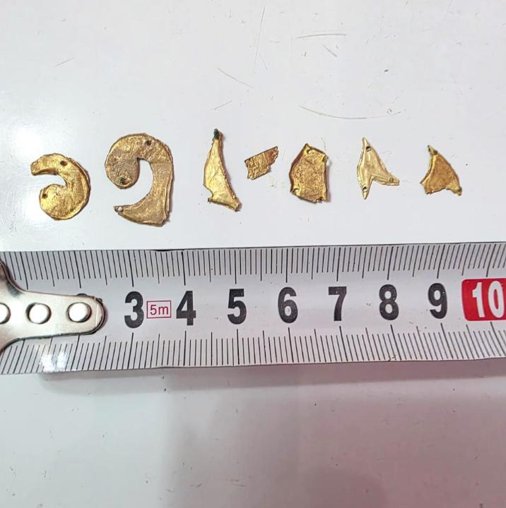 "Под насыпью кургана № 3 были обнаружены костные останки человека, а также золотые пластины. Среди находок выделяется золотой перстень с изображением льва. Такие артефакты являются редкостью. Перстень весом почти восемь грамм изготовлен из золотого слитка. Изображение льва на перстне тесно связано с синкретизмом. На первый взгляд можно увидеть лицо женщины, морду и гриву льва, или даже быка, возможно, барана, культ которых был распространен у древних племен", – говорится в сообщении пресс-службы ведомства.