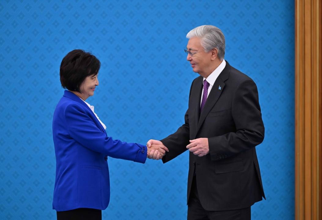Преподаватель английского языка в КГКП "Геологоразведочный колледж" управления образования области Абай Айгуль Толеутаевна Омарбекова награждена медалью "Ерен еңбегі үшін".
